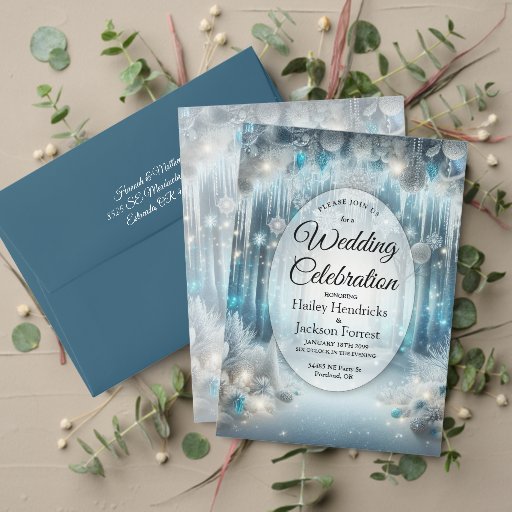 Glittering Snowy Forest Wedding Einladung