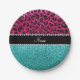 Glitterleopard-Türkis-NamensGlitter des heißen Pappteller