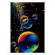 Eine digitale Abbildung glitzernder Blasen mit schwarzem Hintergrund. Spektrumanfärbung.