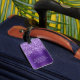 Passen Sie das moderne handgeschriebene Kalligrafieschrift an, um Ihr eigenes Gepäckanhänger zu erstellen. Fügen Sie ein Monogramm Initial hinzu, um eine erste Kombination aus Vornamen zu erstellen. Es gibt viele nette Schriftart Stile für Ihre Kontaktdaten. Girly Imitate amethystieren lila Glitzer und gebürstete Metallfolie, digitale Kunst, die wie ein Foto auf Ihrem Design drucken wird.