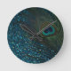 Glittery Aqua Peacock Runde Wanduhr