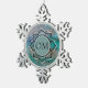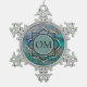 Auf einem abstrakten, blauen Gemälde mit festlichem funkelnd Glitzer für eine Kulisse ist ein eleganter silberner Lotus Blume Rahmen, wo in der Mitte ist ein blauer Bereich, wo Sie es personalisieren können mit einem Logo, Namen, Buchstaben oder behalten wie mit den Buchstaben OM erstellt Zen wie Farben.