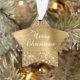 Extravagante Kalligraphie Frohe Weihnachtsstern Form Acrylschmuck. Girly Imitate funkelnd Gold Glitzer auf der Oberseite und unten Rand über einem Imitat goldgebürstete Metall-Stil Ober-Folie. Die Farbe der altmodischen Textgrafik kann geändert werden. Sie können die Typografie löschen und ein schönes, modernes Kalligraphieskript aus dem System verwenden, um Ihr eigenes personalisiertes Ornament zu erstellen.