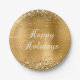 Girly Imitate funkelnd Gold Glitzer auf der Ober- und Unterkante, über einem Imitat goldgelb gebürstete Metall-Stil Ober-Folie. Die Textfarbe von Happy Holidays kann geändert werden. Die Hauptfarben sind goldgelb, braun, beige, braun, gold, schwarz und weiß.