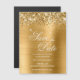 Imitate Gold Glitzer mit einem Gold für Ihren Hochzeitsmagneten speichern Sie die Daten. Der dekorative "Save the Date" Schriftart ist ein klassischer extravaganter Kalligraphie-Stil gepaart mit einem modernen Schriftart-Stil. Der gürtelförmige Glitzer und die Folie zeichnen sich durch ihre Art aus wie ein Foto auf diesem Magneten.