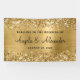 Eine moderne, elegante Kalligraphie mit einem modernen Schriftart im All-Caps-Stil in Schwarz. Erstellen Sie Ihre eigene Hochzeitsfeier Begrüßungszeichen für das Paar. Im Hintergrund befindet sich ein funkelnd vergoldeter Imitat mit einer digitalen Kunstgrafik aus gebürstetem Metall.