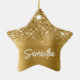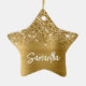 Passen Sie die Farbe und Größe des weißen Schriftartes an, wie sie für ihren Vornamen benötigt werden. Wählen Sie Ihren eigenen Schriftart Stil! Es gibt mehrere fette, moderne Schriftart für die Kalligraphie von Pinselskripten. Der Hintergrund ist mit großen Imitaten vergoldeten Glitzer und Imitaten gebürstet Metall goldgelben Folie. Die Glam aus mädchenhaftem Glitzer druckt wie ein Foto auf diesem sternförmigen Keramik-Urlaubsornament.