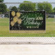Ein lustiges Bannerzeichen für drinnen oder draußen, mit einigen glam metallischen Ballons und glitzernden Konfetti auf einem reich strukturierten, tiefgrünen Hintergrund für Ihr personalisiertes Geburtstagsbanner.