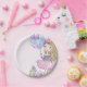 Glittery Pink Birthday Blonde Girl Unicorn Pappteller