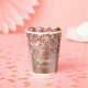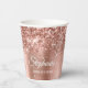 Erstellen Sie Ihre eigenen Baby-Dusche Papier Becher für die Feier Ihres Freundes. Passen Sie die eleganten Stile des Schriftartes nach Bedarf an. Im Hintergrund finden Sie digitale Imitate Rose Gold Glitzer, Glitzern und gebürstete Metallfolie. Diese künstlerischen Elemente drucken wie ein Foto.