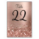 Erstellen Sie Ihre eigene Hochzeitstext-Tischnummer auf einer Papierkarte. Im Hintergrund der Digitalkunst befindet sich ein gürteliger Imitat funkelnd Rose Gold Glitzer über einem Imitat Rose Gold und rosa rot Ober Farbverlauf Folie. Die dekorativen Glitzer-, Funkel- und Folieneffekte drucken wie ein Foto. Der elegante Kalligraphie Schriftart Stil und Größe können bei Bedarf geändert werden.