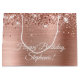 Imitate Rose Gold Glitzer und Folie mit einem personalisierten Happy Birthday Text Design. Passen Sie den eleganten Kalligrafiestil, die Größe und die Farbe je nach Bedarf an. Schwarz, Weiß, Rosa, Rose Gold Hochzeit danke Geschenktasche. Das ganze Glanzlicht und Glanz wird mit digitalen Kunstgrafiken erzeugt, die wie ein Foto gedruckt werden. Für diese Entwürfe wird kein Glitzer verwendet.