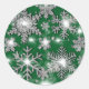 Glittery silbergrüne festliche Schneeflockenmuster Runder Aufkleber
