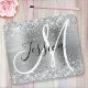 Girly Imitate funkelnd silberne Glitzer Highlights auf der Ober- und Unterkante, über ein Imitat silbergraue, bürstenbehaftete Metalle oder Edelstahl Stil Ober-Folie. Das Monogramm zeichnet sich durch eine elegante Kombination aus Schwarz und Weiß-Kalligraphie aus. Passen Sie die Stile des Schriftartes an, um Ihr eigenes Design zu erstellen. Die Hauptfarben sind silbergrau, silberfarben, schwarz und weiß.