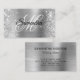 Erstellen Sie Ihre eigenen Imitate funkelnd silberne Glitzer und graue Folie Visitenkarten. Auf der Vorderseite befindet sich ein extravagant-schwarz-weißes Schriftzeichen-Monogramm. Auf der Rückseite finden Sie grundlegende Kontaktinformationen. Sie können die Schriftart und Text nach Bedarf anpassen. Alle mädchenhaften Grafiken und Elemente dieses Designs werden wie ein digitales Foto gedruckt.