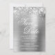 Imitate silber Glitzer mit einem silbergrauen Metallfolie Digital Art Design gepaart mit Ihrem Verlobung Foto für Ihre Hochzeit speichern die Daten. Der dekorative "Save the Date" Schriftart ist ein klassischer extravaganter Kalligraphie-Stil gepaart mit einem modernen Schriftart-Stil. Imitate glam Glitzer ein Foto speichern Sie die Daten. Das digitale Kunstwerk druckt auch wie ein Foto.