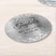 Erstellen Sie Ihre eigenen quinceanera 15. Geburtstagsparty rund Papier Untersetzer. Girly Imitate funkelnd silberner Glitzer auf der Oberseite und unten Kante, über eine Imitate Edelstahl-Metallic Stil ombre Folie. Passen Sie die Stile des Schriftartes an, um Ihr eigenes Design für ihre besondere Feier zu kreieren. Eine klassische, elegante Kalligraphie gepaart mit einem Schriftart aus Serifen.