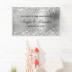 Eine moderne, elegante Kalligraphie mit einem modernen Schriftart im All-Caps-Stil in Schwarz. Erstellen Sie Ihre eigene Hochzeitsfeier Begrüßungszeichen für das Paar. Im Hintergrund befindet sich ein Imitat funkelnd silberner Glitzer mit einem gebürsteten Metall silbergraue Ober-Folie Digital Art Grafik.