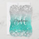 Glittery Silver Turquoise Monogram 40. Geburtstag Einladung