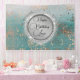 Glittery whimsical Stardust auf einer ombre blauen aquamarinen Kulisse mit einem eleganten silbernen Kreis mit silber blüh, wo Sie Ihre Veranstaltung personalisieren können und träumen Glam-Vibes.