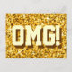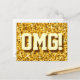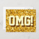 Postcard mit modernem Design, Sterne verstreut auf einem stilisierten "Sequin Look"-Hintergrund und "OMG!" in Gelb- und Brauntönen. Kann als Hintergrund für Ihren eigenen Text, Bilder und Ideen verwendet werden. Bitte beachten Sie, dass es sich um ein gedrucktes, digitales Kunstbild handelt, das weder glänzt noch echter Glitzer oder Sequenzen enthält.