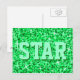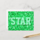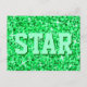 Postcard mit modernem Design, Sterne verstreut über einen stylisierten "Sequin Look" Hintergrund und "STAR" in Grün-Tönen. Kann als Hintergrund für Ihren eigenen Text, Bilder und Ideen verwendet werden. Bitte beachten Sie, dass es sich um ein gedrucktes, digitales Kunstbild handelt, das weder glänzt noch echter Glitzer oder Sequenzen enthält.