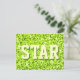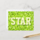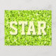 Postcard mit modernem Design, Sterne verstreut über einen stylisierten "Sequin Look" Hintergrund und 'STAR' in Kalkgrün. Kann als Hintergrund für Ihren eigenen Text, Bilder und Ideen verwendet werden. Bitte beachten Sie, dass es sich um ein gedrucktes, digitales Kunstbild handelt, das weder glänzt noch echter Glitzer oder Sequenzen enthält.