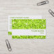 Visitenkarte mit modernem Design mit Sternen, verstreut über einen stilisierten "sequin look"-Musterhintergrund in Kalkgrün und grüner Text auf weißem Hintergrund Bitte beachten Sie, dass dies ein gedrucktes, digitales Kunstbild ist, es glänzt nicht oder enthält echter Glitzer oder Sequenzen.