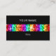 Visitenkarte mit modernem Design mit Sternen verstreut über stylisierte "sequin look" regenbogenfarbene Streifen auf einem schwarzen Hintergrund. Ein individualisierbares Design für Sie, um mit Ihrem eigenen Text, Bildern und Ideen zu personalisieren. Bitte beachten Sie, dass es sich um ein gedrucktes Digitalkunstbild handelt, das keinen echten Glitzer oder keine Sequenzen enthält