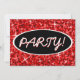 Einladung mit modernem, bedrucktem Design mit Sternen auf einem stilisierten "sequin look"-Hintergrund in Rot- und Weißtönen auf schwarzem ovalem Hintergrund. Ein individuell anpassbares Design für Sie, um mit Ihrem eigenen Text, Bildern und Ideen zu personalisieren. Bitte beachten Sie, dass dies ein gedrucktes digitales Kunstbild ist. Das Produkt leuchtet nicht oder enthält keine echten Glitzer oder Sequenzen.