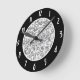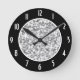 Die Wanduhr mit modernem Design mit Sternen verstreut auf einem stilvollen "Sequin Look"-Muster-Hintergrund in silbergrauen Farbtönen, schwarz gekleidet. Kann als Hintergrund für Ihren eigenen Text, Bilder und Ideen verwendet werden. Andere Stiloptionen sind verfügbar. Bitte beachten Sie, dass es sich um ein gedrucktes, digitales Kunstbild handelt, das weder glänzt noch echter Glitzer oder Sequenzen enthält.