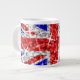 Fliegen Sie die britische Flagge mit diesem lustigen Unijack-Design mit Stars, die über einen stilisierten "Sequin Look"-Muster-Hintergrund verstreut sind. Tasse mit einem roten, weißen, silbergrauen und blauen, anpassbaren Design für Sie, um mit Ihrem eigenen Text, Bildern und Ideen zu personalisieren. Bitte beachten Sie, dass dies ein gedrucktes digitales Kunstbild ist. Das Produkt leuchtet nicht oder enthält keine echten Glitzer oder Sequenzen.