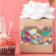 Ein Konfetti-Wandteppich aus Farben bildet dieses abstrakte Design. Hintergrund in silber lila Glitzer.