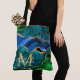 Diese Tasche ist mit einem eleganten und glamourösen, blau-grün-agierten Marmorboden mit goldenen Glitzer-Akzenten in Imitaten ausgestattet. Das Monogramm kombiniert handgeschriebene Skripte mit modernen serifenlosen Schriftart für ein elegantes und raffiniertes Aussehen. Dies wird das ideale Geschenk, da es mit einem Namen und Initial angepasst werden kann. Die Sequinen und die bedrückte Textur schaffen die perfekte Mischung aus Chic und Grunge.