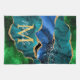 Dieses Küchentuch ist mit einem eleganten und glamourösen marmorfarbenen Hintergrund in Blau und Grün mit goldenen Glitzer-Akzenten der Imitate ausgestattet. Das Monogramm kombiniert handgeschriebene Skripte mit modernen serifenlosen Schriftart für ein elegantes und raffiniertes Aussehen. Dies wird das ideale Geschenk, da es mit einem Namen und Initial angepasst werden kann. Die Sequinen und die bedrückte Textur schaffen die perfekte Mischung aus Chic und Grunge.