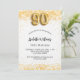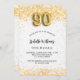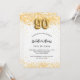 Für eine elegante 90. Geburtstagsfeier. Ein schick weißer Hintergrund. Dekoriert mit Imitaten Gold Glitzer, Glitzern. Personalisieren und fügen Sie Namen, Alter und Party Details hinzu. Der Name wird mit einem handgeschriebenen Stilskript geschrieben. Nummer 90 mit ballon Stil Schriftart.