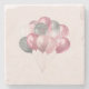 Ein Untersetzer aus Stein mit einer Illustration von einem Haufen Ballons in Rosa und Silbergrau.