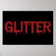 Glitzer bei Bluttypografie. Bluttiger Schriftzug, für Blut im Blut, aber nur ein Glitzer.