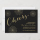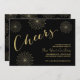 Eine einfache Party Einladung mit glitzernden Imitaten Gold Sternexplosionen.