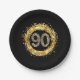 Glitterfolie Confettischwarzes und -goldder diamantzahl 90 Goldpartypaper Teller für 90. Geburtstag des Meilensteines! Zusammenpassende Einladungen, Aufkleber, Magneten, Verpackungspapier, Cocktailservietten und Porto-Briefmarken verfügbar. Treten Sie mit dem Designer an in Verbindung: cheryl@cheryldanielsart.com, zum dieses Entwurfs auf einem anderen Produkt zu fordern. Verwenden Sie BESONDERS ANFERTIGEN ES Knopf zum Einsatztext.
