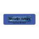 Fügen Sie Ihrer Korrespondenz mit diesen individuell gestaltbaren Rücksendeadressen-Aufklebern eine Touch Eleganz hinzu und funkeln Sie. Mit einem lebendigen, blauen Hintergrund und einer glitzernden Textur imitieren diese Labels das Aussehen glänzender Sequinen, perfekt für eine Aussage. Der elegante, kursive Schriftart, der für den Namen verwendet wird, fügt einen persönlichen und raffinierten Flair hinzu, der garantiert, dass Ihre E-Mails nicht fehlen. Die Adresse wird in einem sauberen, lesbaren Format angezeigt, das eine einfache Anpassung an Ihre Bedürfnisse ermöglicht. Ideal für besondere Anlässe oder für die Eleganz des Alltags, bringen diese Labels eine glamouröse Oberfläche in Ihre Kuverts.