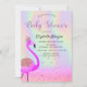 Glitzer Bokeh, Flamingo, Holographic Baby Shower Einladung