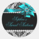Glitzer Damask & Jewel Aquamarin Bow Sweet 16 Aufk Runder Aufkleber