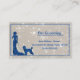 Glitzer schauen mit einer Dame, die einen Hund führt. Das ist eine "grooming business card"
