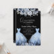 Elegantes blaues Glitzer Kleid und Blume auf schwarzem Hintergrund.