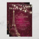 Glitzer Eiffelturm, Burgund Rose Quinceañera Einladung