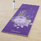 Elegante Yoga-Matte in einem lila, lila Damast-Muster, mit Grafiken von silber und lila Glitzer Federn und Lavendel-Rose. Personalisieren Sie den Namen, um Ihre Bedürfnisse Anzug.