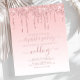Ein elegantes, modernes Design mit einem rosafarbenen, omberfarbenen Hintergrund und einem oberen Rand von rosa Glitzer-Tropfen. Das Wort "Hochzeit" und die Vornamen des Paares erscheinen in Kleinbuchstaben Kalligraphie-Skript mit dekorativen Swashes am Anfang und Ende, wobei der Rest in Sans Serif Schriftart. Der rosafarbene Hintergrund und der Tropfen des Glitzer werden auf der Rückseite wiederholt. (Um die Swashes behalten, ersetzen Sie nur die Buchstaben, indem Sie die Symbole verlassen haben.)