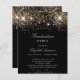 Ein schwarzer Hintergrund mit Glitzer und Imitat dekoriert. Der Name ist mit einem modernen goldfarbenen handgeschriebenen Stilskript geschrieben. Personalisieren Sie Ihre Party-Daten und fügen Sie sie hinzu.