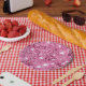 Glitzer-Papierdrucke für glatte, rosa Teller